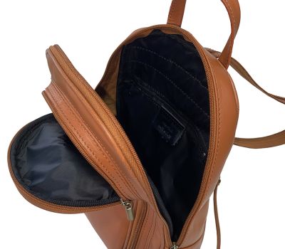 Batoh na záda i do ruky vyrobený z pravé přírodní kůže v barvě koňakové.