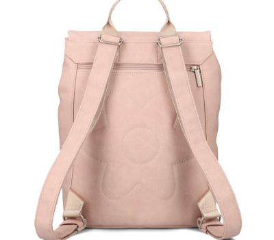 Dámský batoh má jedno krátké ucho do ruky a dva nastavitelné popruhy na záda. Popruhy jsou vyrobené z pevného polyuretanu, který je pro větší pevnost ještě sešitý s textilním popruhem. Batůžek má na zádech kapsu na zip. Na přední straně je další kapsa na zip. Horní část batůžku je překlopená dopředu a zapíná se na magnety skryté pod materiálem. Batůžek má (pod klopnou) ještě horní zip. Uvnitř batůžku je samostatný vyměkčený oddíl, kam se vejde notebook o rozměrech max. 23 x 32 cm. Uvnitř batůžku jsou další dvě otevřené a vyměkčené kapsičky na mobily. Na přední straně je logo ZWEI. Kovové komponenty mají bílou matnou barvu. Batůžek je perfektní volbou pro nošení do města - má ideální velikost, není příliš široký a dobře sedí na zádech. Nejúspěšnější model z kolekce ZWEI a nejprodávanější batůžek v našich kamenných obchodech.