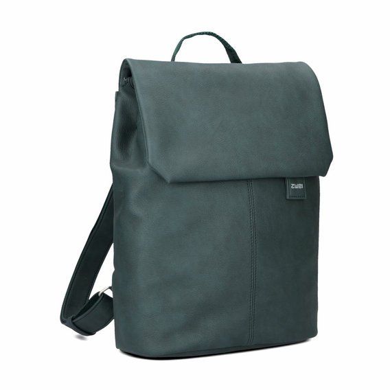 Dámský batoh má jedno krátké ucho do ruky a dva nastavitelné popruhy na záda. Popruhy jsou vyrobené z pevného polyuretanu, který je pro větší pevnost ještě sešitý s textilním popruhem. Batůžek má na zádech kapsu na zip. Na přední straně je další kapsa na zip. Horní část batůžku je překlopená dopředu a zapíná se na magnety skryté pod materiálem. Batůžek má (pod klopnou) ještě horní zip. Uvnitř batůžku je samostatný vyměkčený oddíl, kam se vejde notebook o rozměrech max. 23 x 32 cm. Uvnitř batůžku jsou další dvě otevřené a vyměkčené kapsičky na mobily. Na přední straně je logo ZWEI. Kovové komponenty mají bílou matnou barvu. Batůžek je perfektní volbou pro nošení do města - má ideální velikost, není příliš široký a dobře sedí na zádech. Nejúspěšnější model z kolekce ZWEI a nejprodávanější batůžek v našich kamenných obchodech.