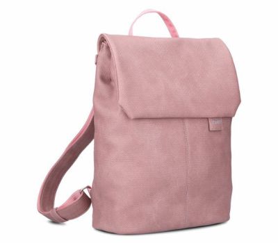 Dámský batoh má jedno krátké ucho do ruky a dva nastavitelné popruhy na záda. Popruhy jsou vyrobené z pevného polyuretanu, který je pro větší pevnost ještě sešitý s textilním popruhem. Batůžek má na zádech kapsu na zip. Na přední straně je další kapsa na zip. Horní část batůžku je překlopená dopředu a zapíná se na magnety skryté pod materiálem. Batůžek má (pod klopnou) ještě horní zip. Uvnitř batůžku je samostatný vyměkčený oddíl, kam se vejde notebook o rozměrech max. 23 x 32 cm. Uvnitř batůžku jsou další dvě otevřené a vyměkčené kapsičky na mobily. Na přední straně je logo ZWEI. Kovové komponenty mají bílou matnou barvu. Batůžek je perfektní volbou pro nošení do města - má ideální velikost, není příliš široký a dobře sedí na zádech. Nejúspěšnější model z kolekce ZWEI a nejprodávanější batůžek v našich kamenných obchodech.