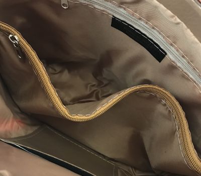 Tato krásná stylová taška přes rameno se dá v okamžiku proměnit v elegantní batoh. K výrobě byla použita kvalitní hovězí " dolarová kůže " s potiskem. Taška je rozdělená separací na dvě vnitřní části, ve kterých najdeme jednu kapsičku na mobil a druhou větší uzavírací zipem.