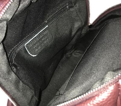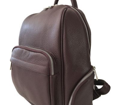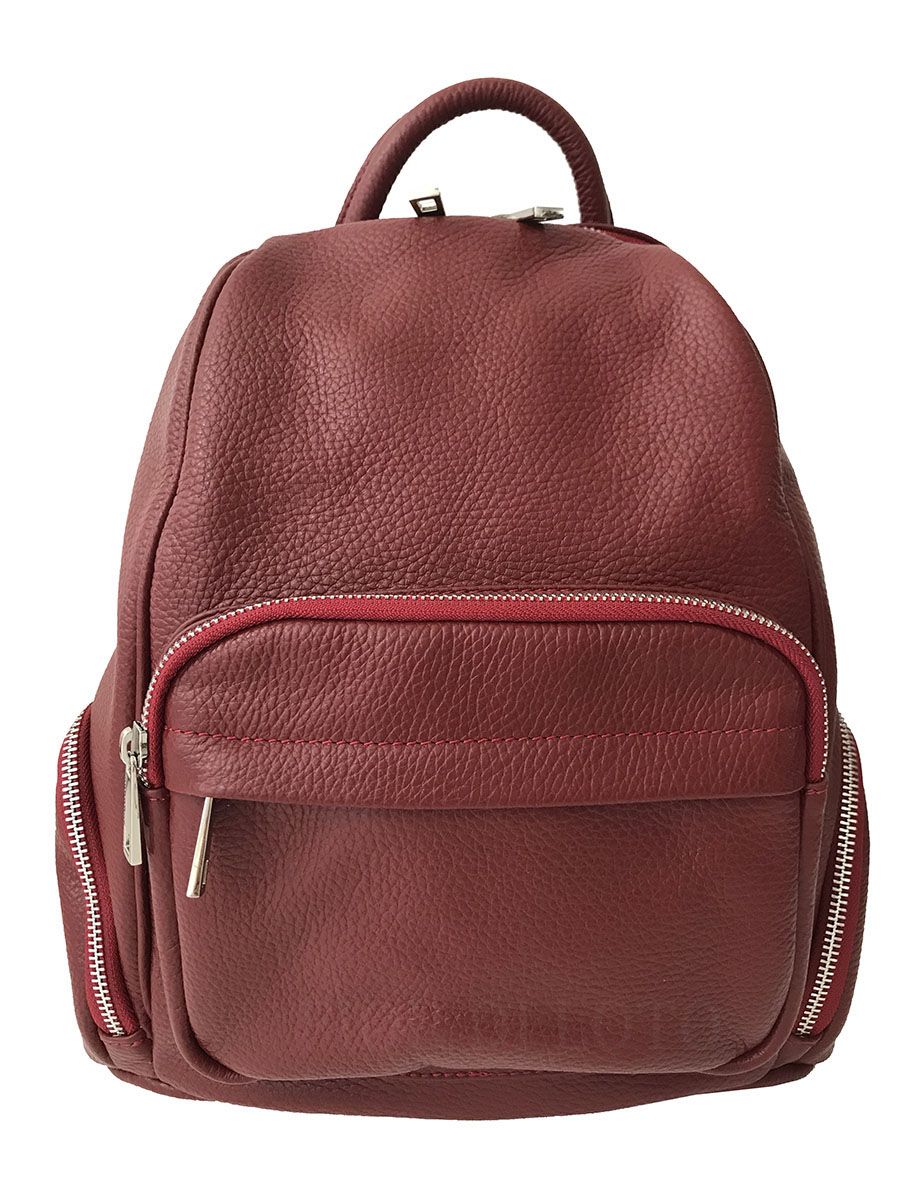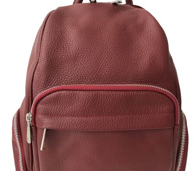 Batoh na záda a do ruky. Tento elegantní batoh je vyroben z pravé dolarové hovězí kůže v červené barvě. Kování a zipy jsou ve stříbrné barvě.