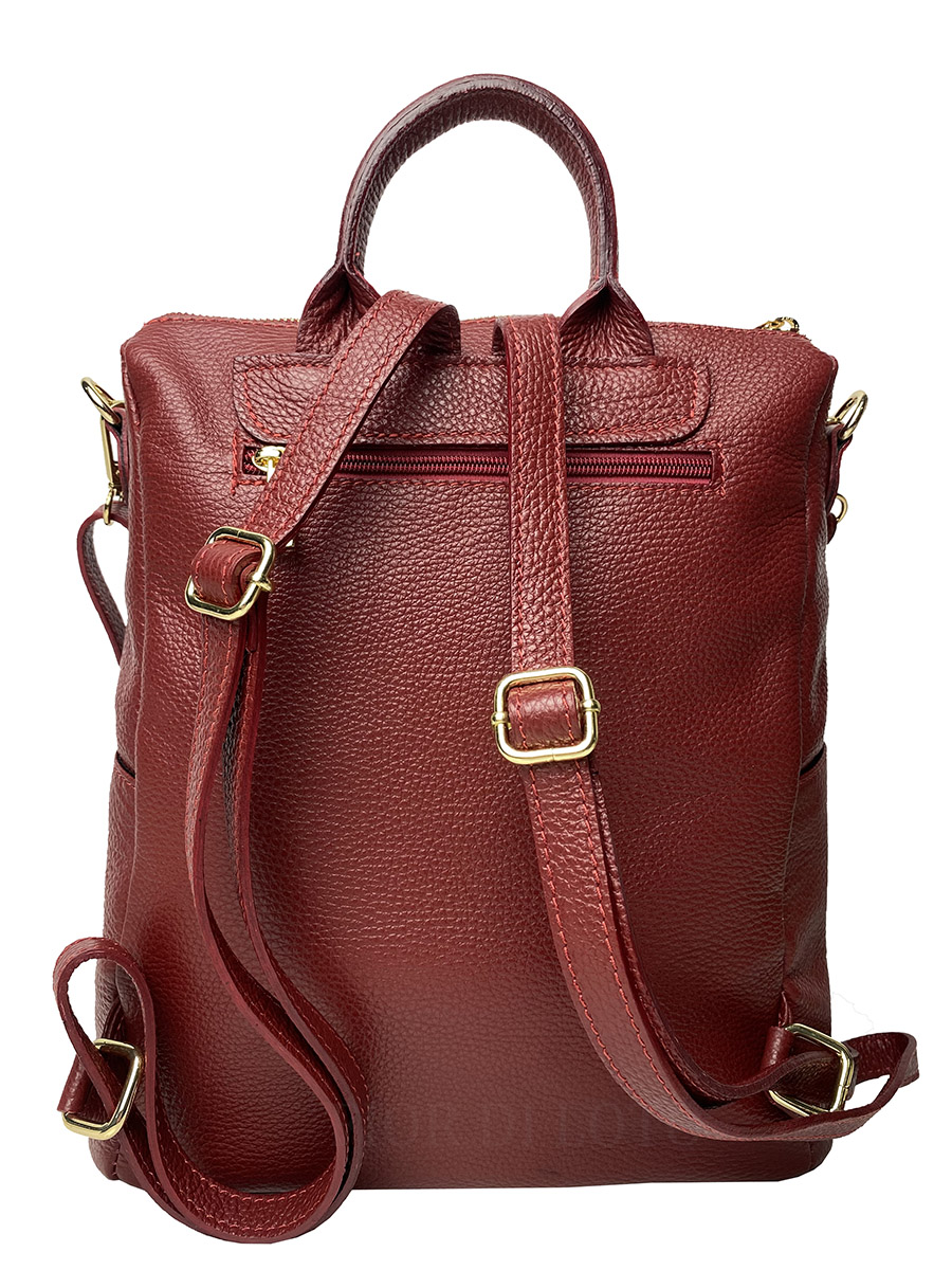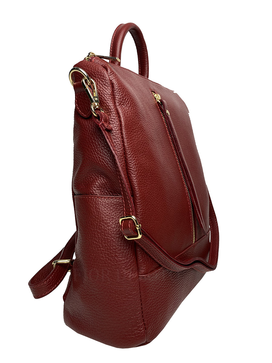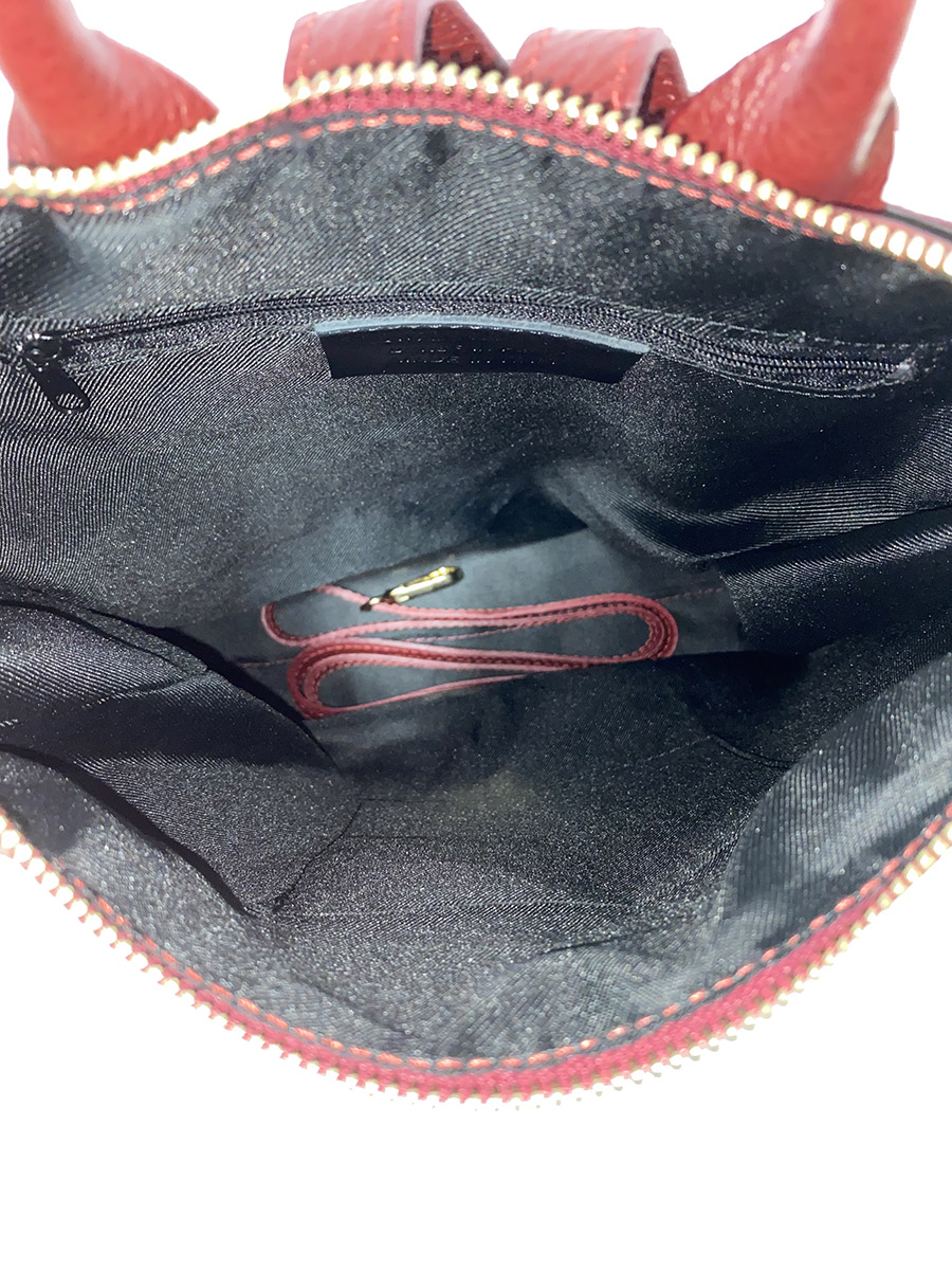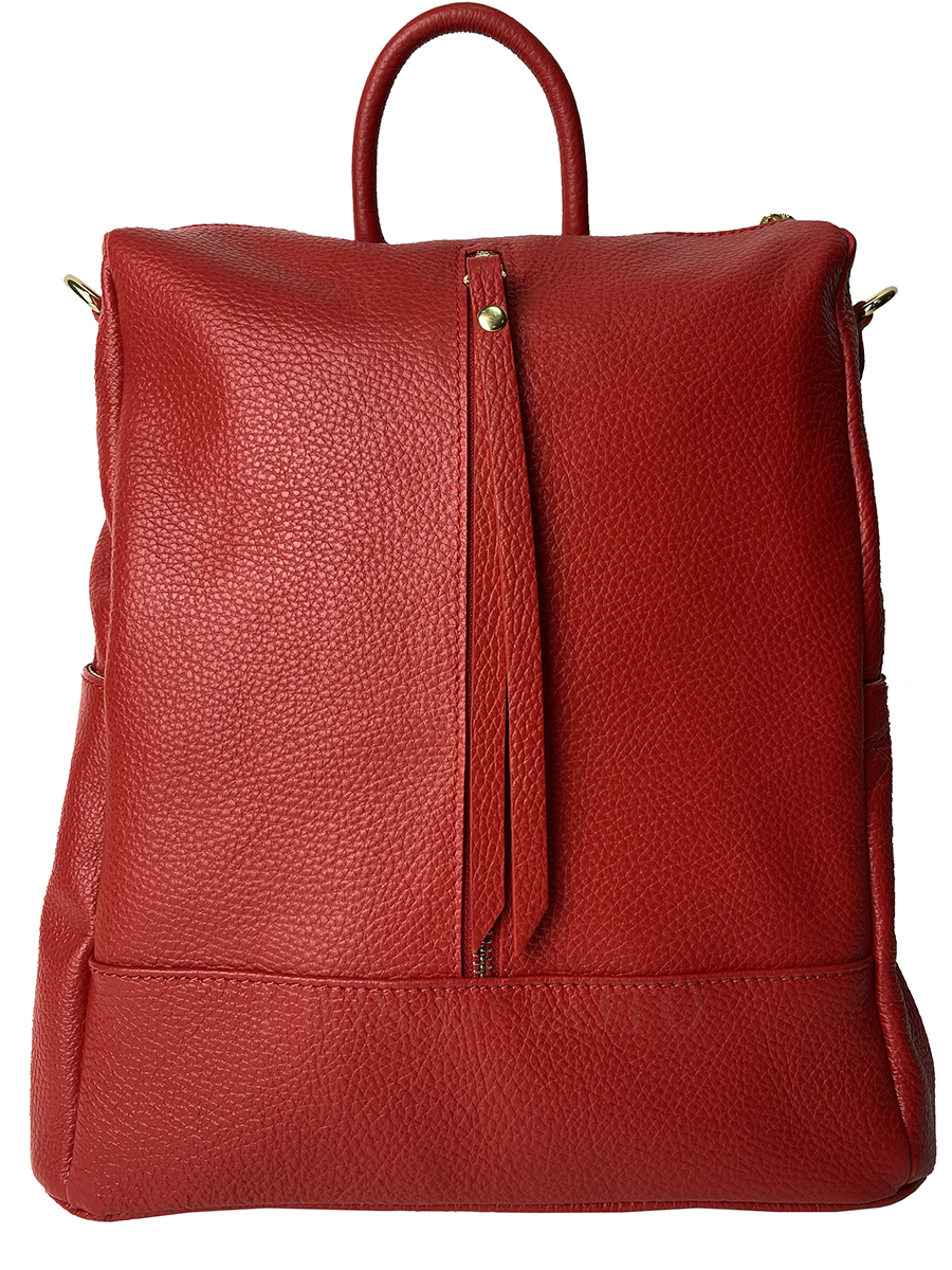 Tento kabelkobatoh z hovězí dolarové kůže v červené barvě bude praktickým pomocníkem každé moderní ženy. Batoh je uzavíratelný zipem s moderně řešenou kapsou na čelní straně. Tato kapsa je určená na drobnosti. Na zadní straně ( na zádech)se nachází další kapsa uzavíratelná zipem. Uvnitř se nachází praktický prostor pro předměty formátu A4 - vnitřní kapsa uzavíratelná zipem a po stranách jsou další menší kapsičky na drobnosti.