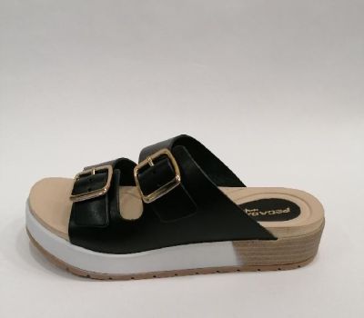 Černé comfort pantofle se zdravotní měkčenou stélkou pro měkký došlap skoženými pásky na spony. Objednávat vždy o číslo větší. ( vel.37 odpovída vel.38 )