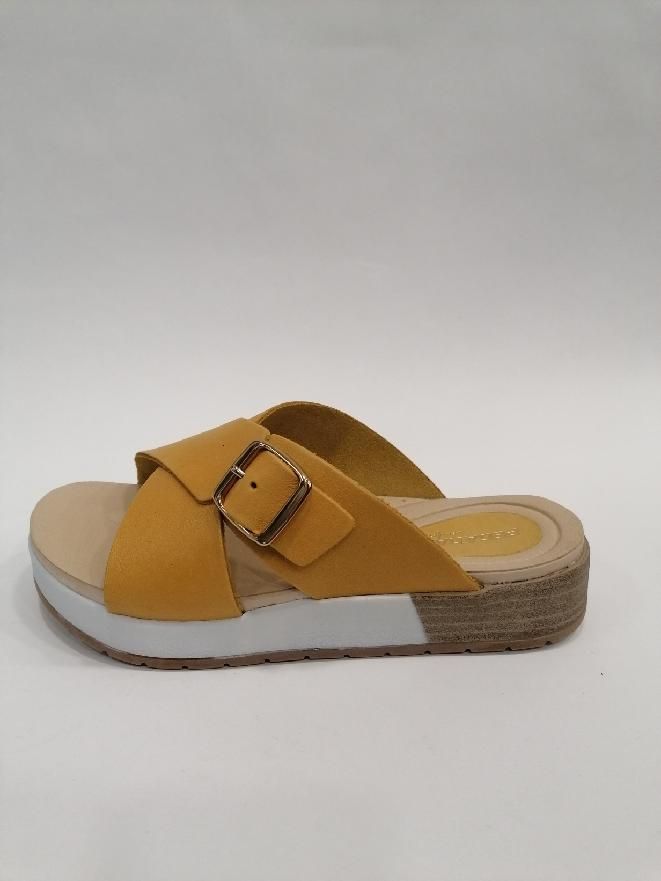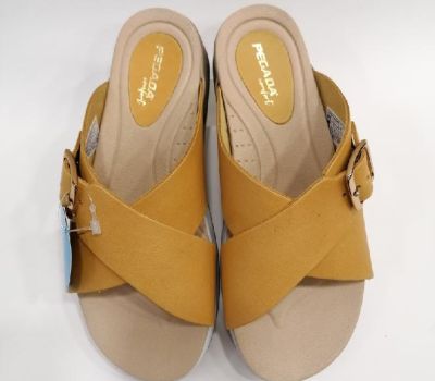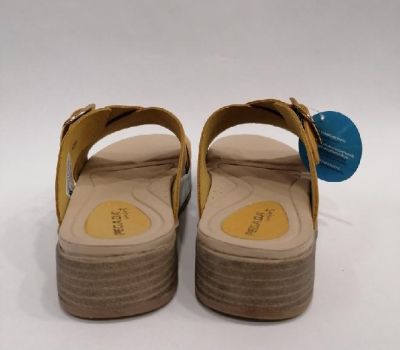 Pegáda dámské zdravotní pantofle pro širokou nohu a vysoký nárt. Měkčená omyvatelná stélkas podporou klenby. Kožený pásek na sponku. Svršek pravá kůže, pěnová měkčená stélka, patní část pravá kůže.
