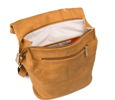 Dámský batoh má jedno krátké ucho do ruky a dva nastavitelné popruhy na záda. Popruhy jsou vyrobené z pevného polyuretanu, který je pro větší pevnost ještě sešitý s textilním popruhem. Batůžek má na zádech kapsu na zip. Na přední straně je další kapsa na zip. Horní část batůžku je překlopená dopředu a zapíná se na magnety skryté pod materiálem. Batůžek má (pod klopnou) ještě horní zip. Uvnitř batůžku je samostatný vyměkčený oddíl, kam se vejde notebook o rozměrech max. 23 x 32 cm. Uvnitř batůžku jsou další dvě otevřené a vyměkčené kapsičky na mobily. Na přední straně je logo ZWEI. Kovové komponenty mají bílou matnou barvu. Batůžek je perfektní volbou pro nošení do města - má ideální velikost, není příliš široký a dobře sedí na zádech. Nejúspěšnější model z kolekce ZWEI a nejprodávanější batůžek v našich kamenných obchodech.