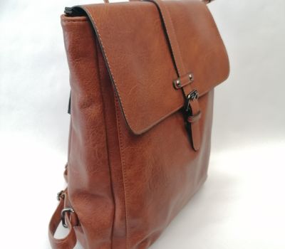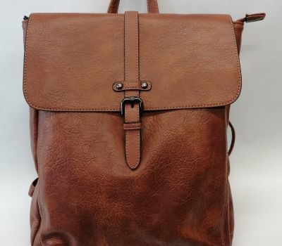 Batoh Melanie VEGAN koňakový z eko kůže . Rozměry: výška 36 cm, šířka 26 cm, hloubka dno 9 cm a nahoru se zužuje do 6 cm hloubky. Pod klopnou je kapsa uzavíratelná na patent a je široká 25 cm a vysoká 27,5 cm. Hlavní velký prostor se uzavírá na zip. Uvnitř batohu v hlavní části jsou 2 malé kapsičky na drobnosti a jedna kapsa uzavíratelná zipem o délce 17 cm. V zadní části (záda) je další vsazená kapička uzavíratelná 17 cm zipem.