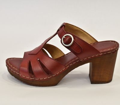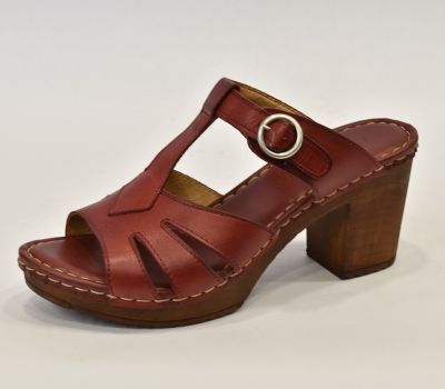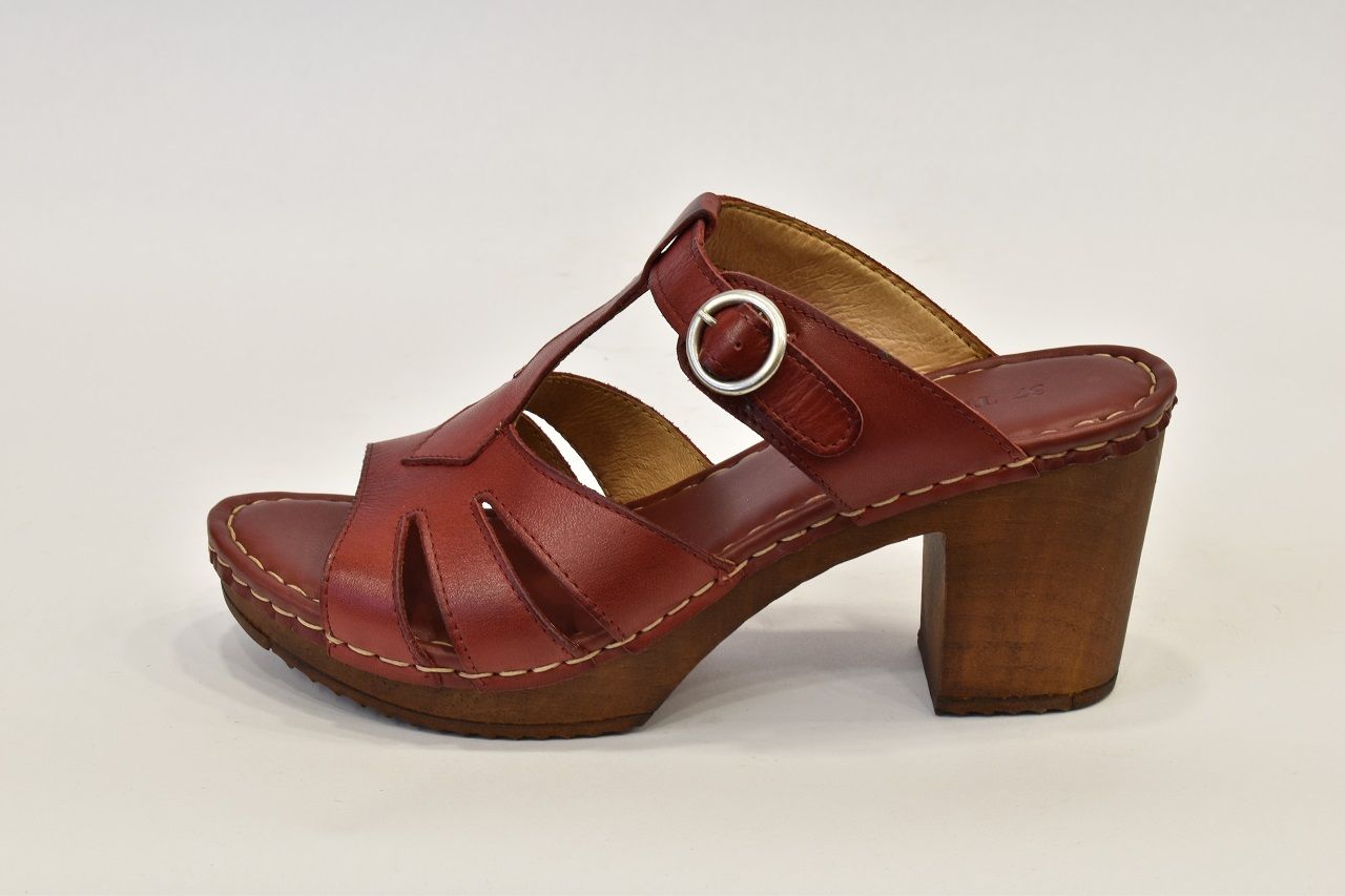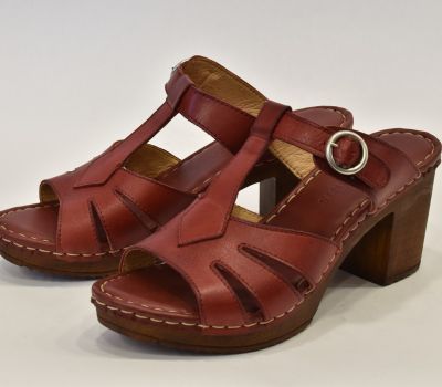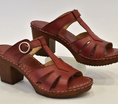 Dámské kožené nazouvací sandále červené na vysokém podpatku značky Ten Points je luxusní letní obuv, která Vás zaujme na první pohled svým kvalitním zpracováním a designem. Svršek, stélka a podšívka obuvi je vyroben výhradně z prvotřídní a kvalitní přírodní usně v červené barvě. Vrchní pásek se dá regulovat na Váš nárt průvlekem pásku kovovou sponou. Stélka je lehce měkčená, při došlapu velmi komfortní. Kontrastní, poměrně lehká platforma přechází v monoliticky spojený podpatek. Podešev je velice pohodlná, tlumící nárazy a zákaznicím vůbec nepřijde, že chodí na vysokém podpatku. Nechejte se inspirovat tímto modelem a oživte svůj botník.