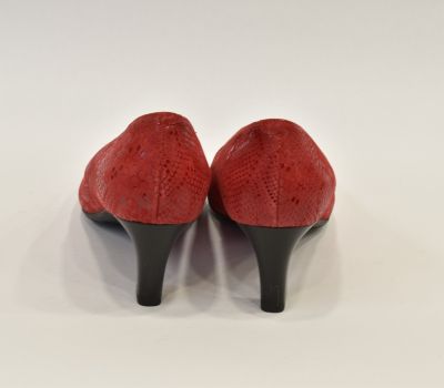 Elegantní, vkusné a jedinečné svým druhem jsou červené lodičky z nejnovější kolekce Arka BioEco. Velmi rychle si získaly širokou skupinu svých příznivců. Jednoduchá minimalistická linie s nádechem dekadence. Z vnější strany nejkvalitnější přírodní kůže. Uvnitř měkká kožená stélka s jedinečným systémem SoftStep, díky kterému nám každý krok v nich přináší skutečné potěšení. Vkusný luk na špičce umožňuje použít tuto lodičku pro jakoukoliv šíři nohy. Perfektně tvarovaný 7 cm podpatek v podobě nízkého bloku jsou dalšími výhodami tohoto modelu. Představený model je dostatečně univerzální, aby byl ideální pro mnoho příležitostí.