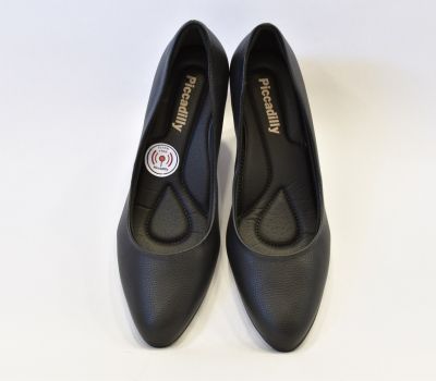 Dámská lodička na středním podpatku. Vhodné i pro nohy s halluxy a jinými deformitami. Dámská obuv brazilské značky Piccadilly je velmi luxusní a komfortní. Všechny modely této značky jsou vybaveny gelovými opatky, které chrání paty před otlaky. Modely na vysokých podpatcích mají anatomicky tvarované stélky a gelovou vložku zajišťující pohodlnou chůzi. Stélky jsou vyrobeny propracovaným systémem kanálků a drážek, které přivádějí vzduch po celé délce chodidla, rovnoměrně rozvádějí tlak na chodidlo a tlumí silné nárazy při došlapu, tím chrání klouby dolních končetin a páteř. Stélky jsou antibakteriální a antimikrobiální a zabraňují vznikání nepříjemných pachů. Obuv je vybavená gelovými opatky, a proto je nutné při obouvání používat lžíci na obuv.