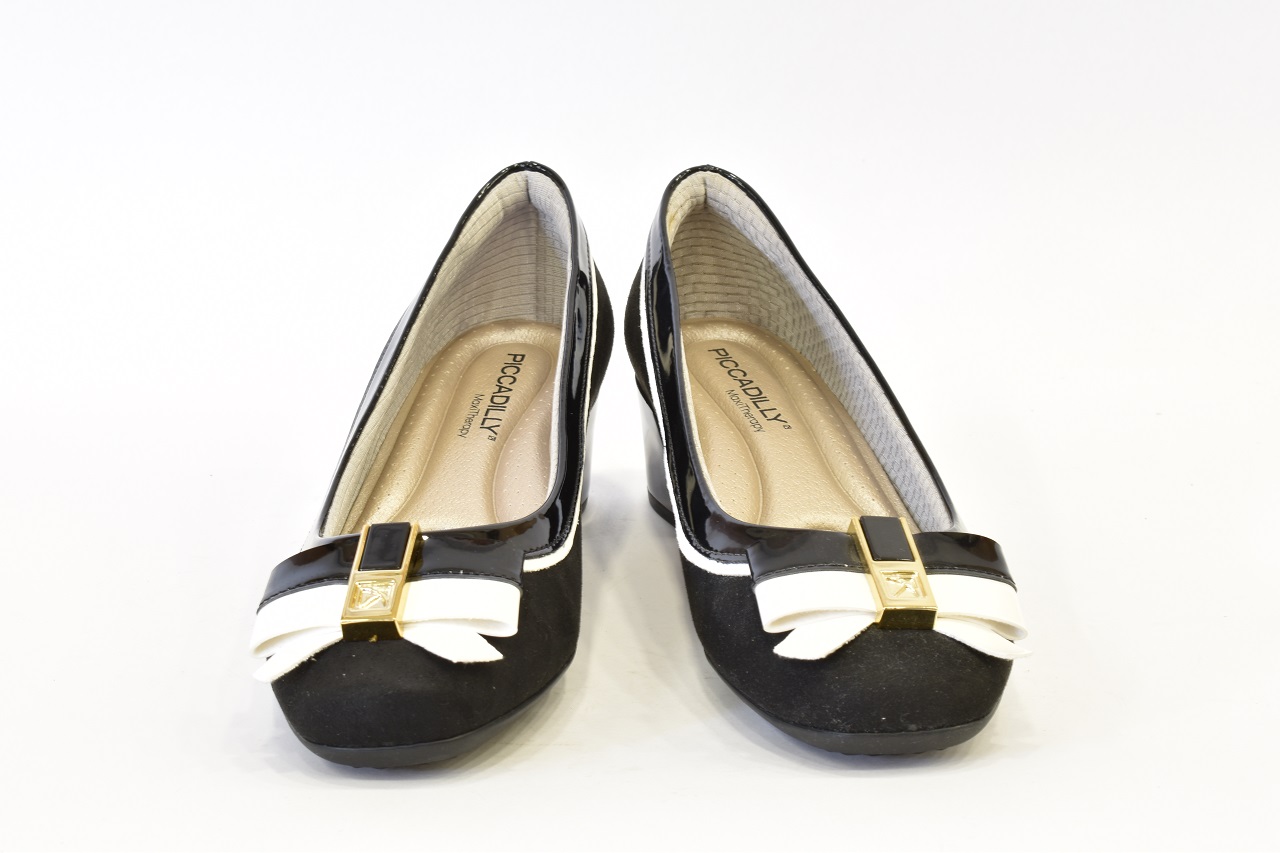 Dámská lodička na širokém podpatku . Vhodné i pro nohy s halluxy a jinými deformitami. Dámská obuv brazilské značky Piccadilly je velmi luxusní a komfortní. Všechny modely této značky jsou vybaveny gelovými opatky, které chrání paty před otlaky. Modely na vysokých podpatcích mají anatomicky tvarované stélky a gelovou vložku zajišťující pohodlnou chůzi. Stélky jsou vyrobeny propracovaným systémem kanálků a drážek, které přivádějí vzduch po celé délce chodidla, rovnoměrně rozvádějí tlak na chodidlo a tlumí silné nárazy při došlapu, tím chrání klouby dolních končetin a páteř. Stélky jsou antibakteriální a antimikrobiální a zabraňují vznikání nepříjemných pachů. Obuv je vybavená gelovými opatky, a proto je nutné při obouvání používat lžíci na obuv.