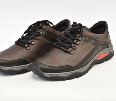 Pánská kožená multisportovní obuv v kombinaci barev černá/hnědý mahagon od Vás zaujme na první pohled svým kvalitním zpracováním a designem. tato lehká a pohodlná obuv Vás nezklame na výletech přírodou a neurazí ve městě. Svršek obuvi je vyroben z pravé lícové kůže. Obuv na bočních stranách je zdobena prošitým koženým proužkem v tmavě šedé barvy. Kožená stélka je vybavena podporou klenby. Uvnitř bot je textilní podšívka. Obuv je šněrovací s kvalitní syntetickou podrážkou, která vyniká dobrou přilnavostí na různých typech terénů. Jistota v chůzi je navíc podpořena vynikající prodyšností boty a dokonale odpruženou podešví, která absorbuje nárazy a tlumí tak dopad nohy.
