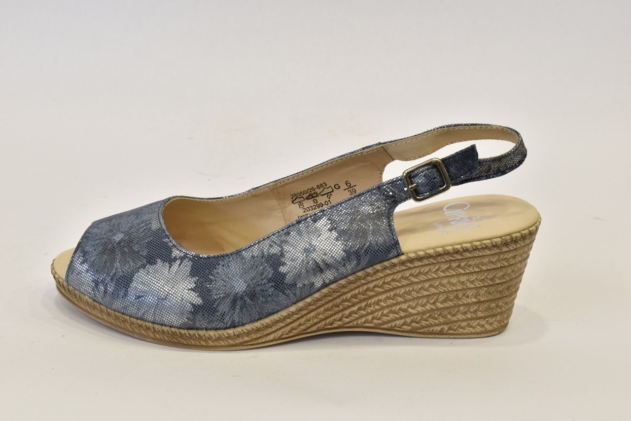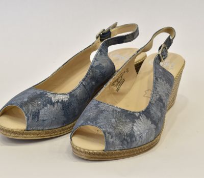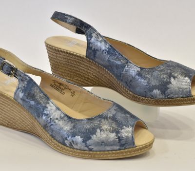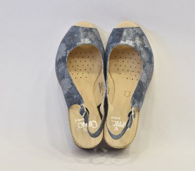 Stylové zdravotní letní sandále bledě modré s perleťovýmí květy značky Caprice do klínku Vás zaujmou na první pohled svým kvalitním zpracováním. Svršek obuvi je vyroben z pravé přírodní kůže. Díky technologii Walking on Air se budete cítit bezpečně a pohodlně. Sandálky mají pásek za patu, který je vybaven všitou gumičkou a jsou uzavíratelné na kovovou sponku. Měkčená kožená stélka dodává pocit pohodlí a "chůze po obláčku." Podešev je syntetická do klínku. Jemné ozdobení ve vzhledu hadí kůže s jemnou perletí dodává obuvi punc luxusu a elegance zároveň. Dopřejte si tento model s "chůzí po obláčku."