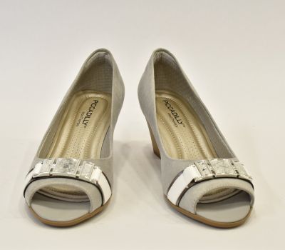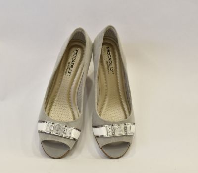 Dámská lodička na širokém podpatku s otevřenou špičkou. Vhodné i pro nohy s halluxy a jinými deformitami. Dámská obuv brazilské značky Piccadilly je velmi luxusní a komfortní. Všechny modely této značky jsou vybaveny gelovými opatky, které chrání paty před otlaky. Modely na vysokých podpatcích mají anatomicky tvarované stélky a gelovou vložku zajišťující pohodlnou chůzi. Stélky jsou vyrobeny propracovaným systémem kanálků a drážek, které přivádějí vzduch po celé délce chodidla, rovnoměrně rozvádějí tlak na chodidlo a tlumí silné nárazy při došlapu, tím chrání klouby dolních končetin a páteř. Stélky jsou antibakteriální a antimikrobiální a zabraňují vznikání nepříjemných pachů. Obuv je vybavená gelovými opatky, a proto je nutné při obouvání používat lžíci na obuv.