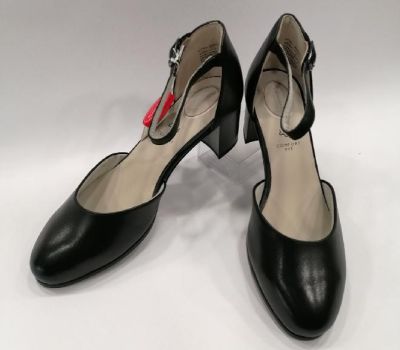 Tamaris Comfort černá lodička na středně vysokém podpatku s páskem okolo kotníku. . Svršek horní materiál - kůže, Podšívka - kůže, textil, Materiál stélky - kůže, syntetika. Podpatek-6 cm