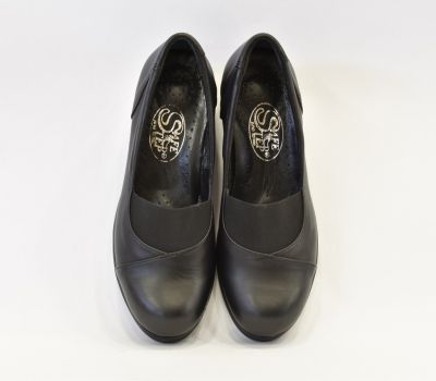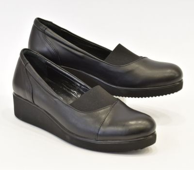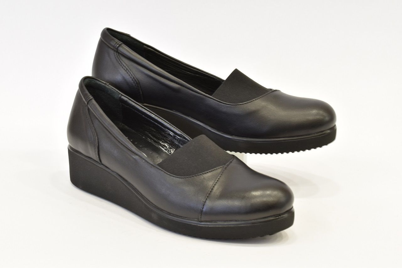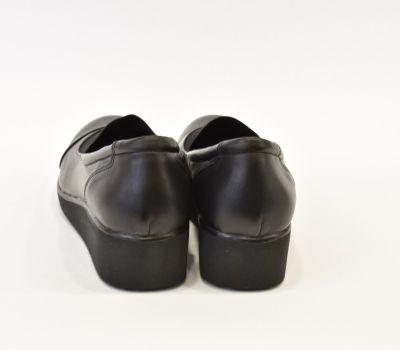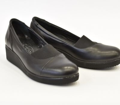 Dámská kožená mokasína černá Safe Step, Vás zaujme na první pohled svým jednoduchým elegantním vzhledem. Propojení elegance s luxusním materiálem a detailním vyřešením zdravotní vyměkčené stélky ocení každá zákaznice. Obuv nabízí komfortní a pohodlnou chůzi. Díky gumičce na nártu se balerína na nártu přizpůsobí přímo na Vaši nohu. Obuv díky gumičce dobře drží na noze. Podešev na platformě Vám zaručí příjemnou chůzi bez pocitu chůze “po kamínkách”. Pro Vaše pohodlí na každém kroku má balerína vyměkčenou kožená stélku podporující klenbu a podporu měkkého došlapu na paty, která tlumí nárazy přichůzi. Tento model je vhodný pro jakýkoliv outfit do města.