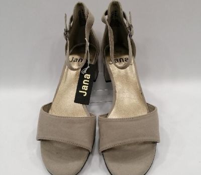 Letní sandále Jana v moderní barvě Stone. Sandále na 4 cm podpatku s plnou patou a řemínkem okolo kotníku jsou ideální volbou k elegantnímu (šaty, sukně) i volnočasovému outfitu (jeansy, kraťasy). Sandály jsou velice komfortní a pohodlné. Boty zaručují měkký došlap. Svršek : textilní, Stélka : textilní a vyměkčená, Podešev : kvalitní syntetika vybavena technologií soft FLEX. Firma Jana garantuje, že obuv je vyrobena v souladu o ochraně životního prostředí.