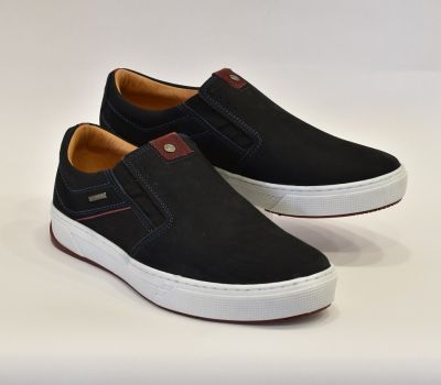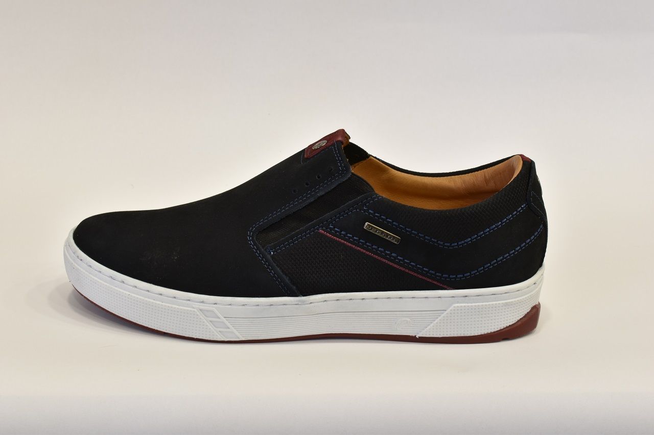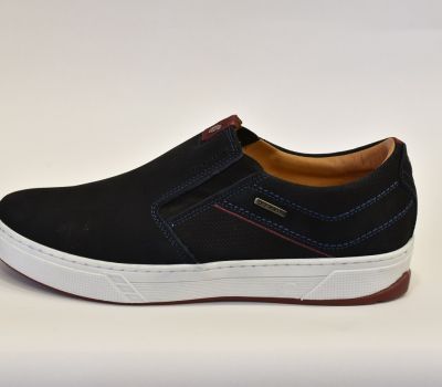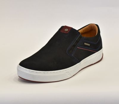Pánská moderní kožená mokasína v tmavě modré barvě Vás zaujme svým kvalitním zpracováním a moderním designem. Svršek obuvi je z pravé přírodní kůže. Kožená stélka je vyjímatelná a měkčená pro příjemný komfortní došlap. Moderní podešev v bílé barvě je lehká a flexibilní. Péči a pohodlí na každém kroku ocení každý moderní muž.