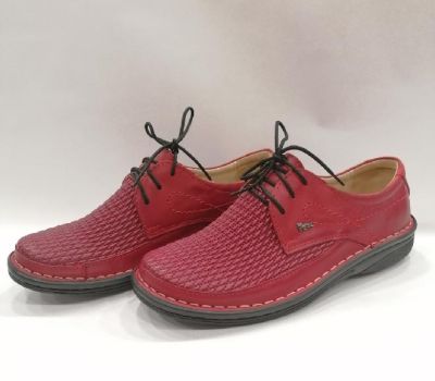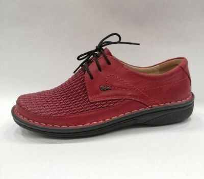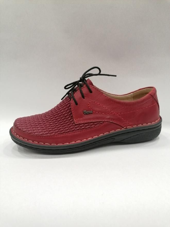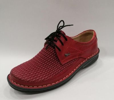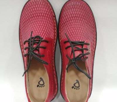 Zdravotní polobotka šněrovací červená na Hallux a kladívkové prsty. Vyjímatelná stélka