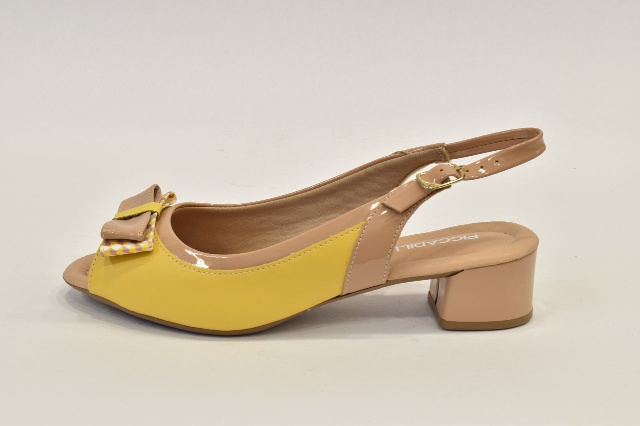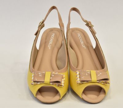 Dámské žlutobéžové otevřené lodičky Piccadilly na nízkém podpatku s nastavitelným páskem kolem paty. Dámská obuv brazilské značky Piccadilly je velmi luxusní a komfortní. Všechny modely této značky jsou vybaveny gelovými opatky, které chrání paty před otlaky. Modely na vysokých podpatcích mají anatomicky tvarované stélky a gelovou vložku zajišťující pohodlnou chůzi. Stélky jsou vyrobeny propracovaným systémem kanálků a drážek, které přivádějí vzduch po celé délce chodidla, rovnoměrně rozvádějí tlak na chodidlo a tlumí silné nárazy při došlapu, tím chrání klouby dolních končetin a páteř. Stélky jsou antibakteriální a antimikrobiální a zabraňují vznikání nepříjemných pachů. Skladem již jen velikost 39!
