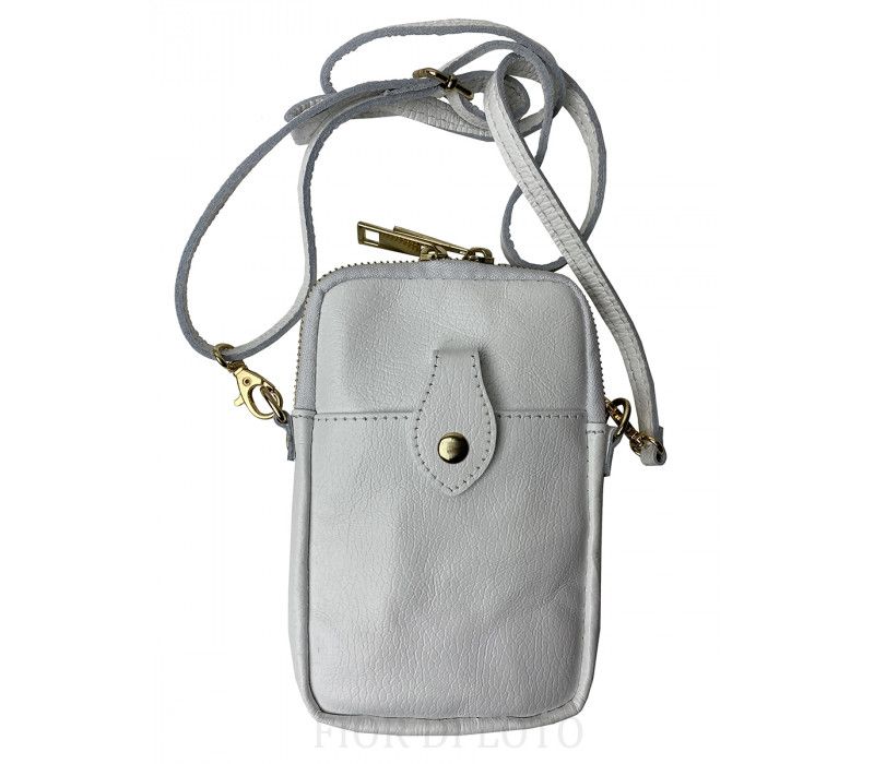 Brašnička na mobil z kůže. barva bílá. Vyrobeno v Italii.