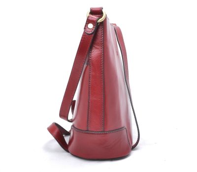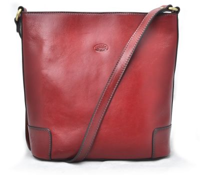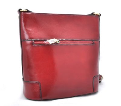 Kožená kabelka v krásné vínově červené barvě vyrobená z hladké kůže. Nošením kabelka získá krásnou patinu. Kabelka je vhodná na pracovní schůzku i do divadla. Kabelka má hlavní kapsu na zip. Uvnitř hlavní kapsy je jedna větší kapsa středová, která se zapíná na zip a menší otevřené kapsičky na drobnosti. V zadní části kabelky je další kapsa na zip.