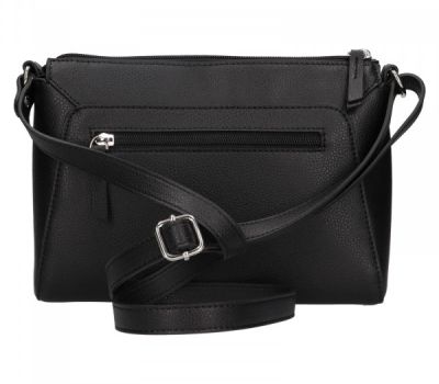 V zadní části kabelky je zipová kapsa a na čelní části je vsazená kapsička uzavíratelná na ozdobný tmavý druk.