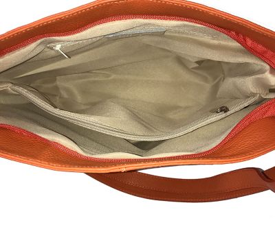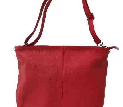 Tato kabelka z hovězí dolarové kůže v červené barvě bude praktickým pomocníkem každé moderní ženy. Kabelku lze nosit na rameni i na dlouhý trak jako crossbody. Kabelka je uzavíratelná zipem. Uvnitř se nachází praktická separace - kapsa uzavíratelná zipem a po stranách jsou další menší kapsičky.