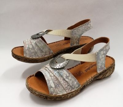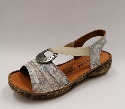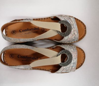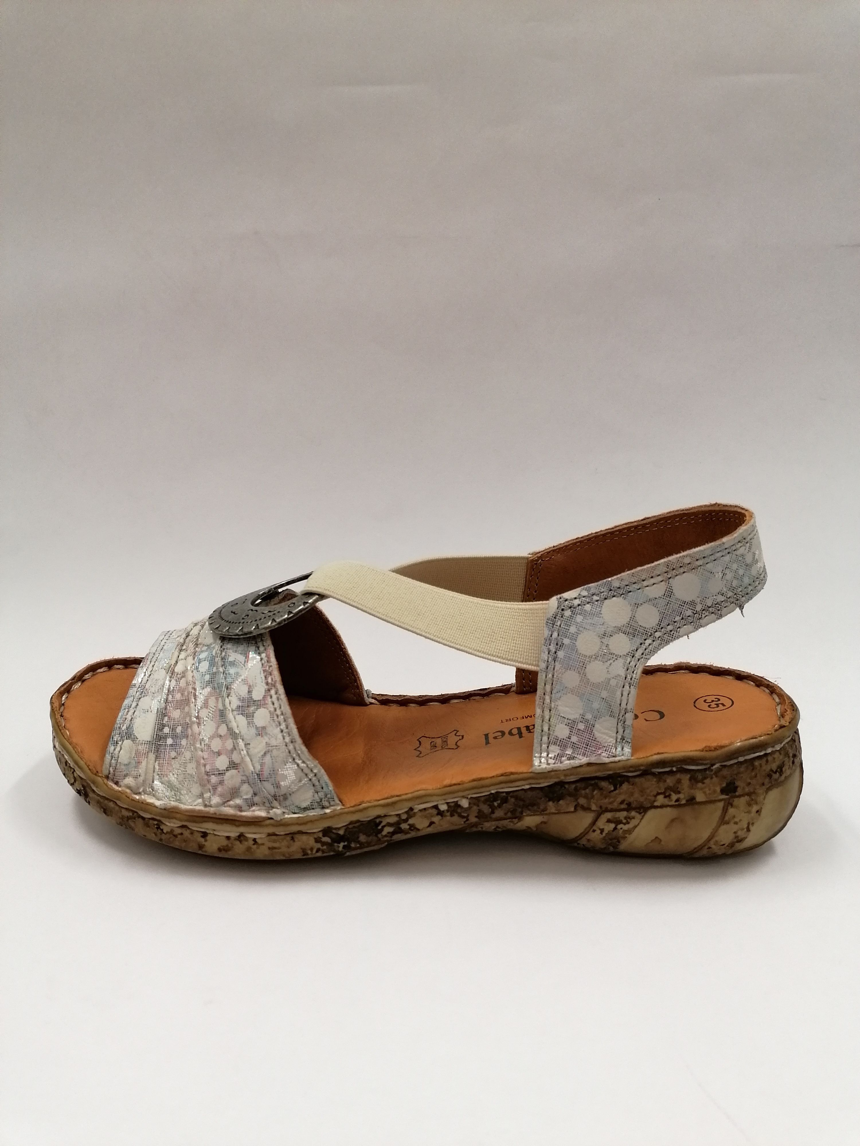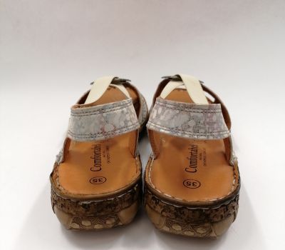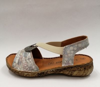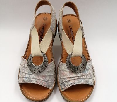 Tento celokožený a elegantní model letních sandálů ocení zákaznice pro jejich kvalitní materiál a komfortní chůzi. Prozouvání do obuvi je velice snadné díky gumičkám v oblasti nártu. Obuv dobře drží na noze . Ideální obuv pro horké letní dny.