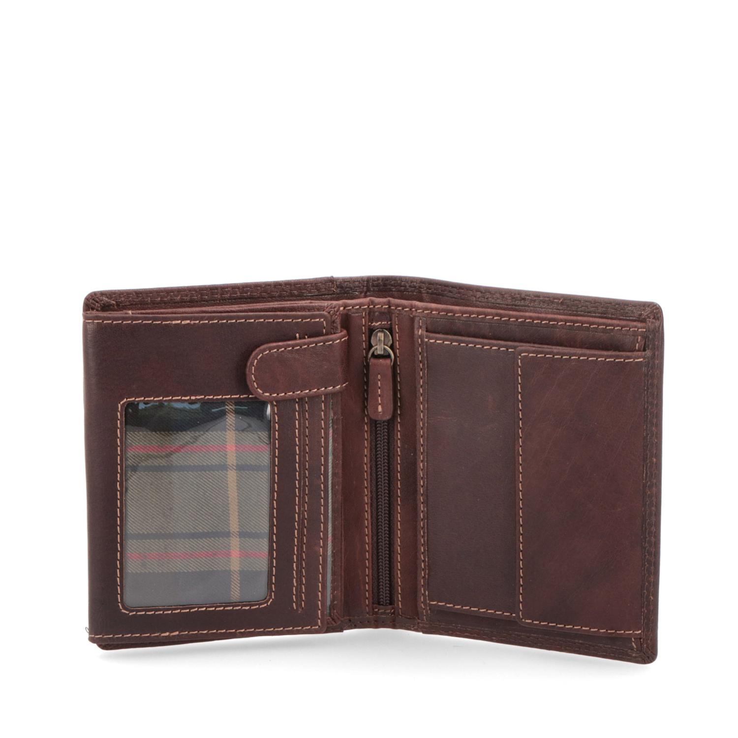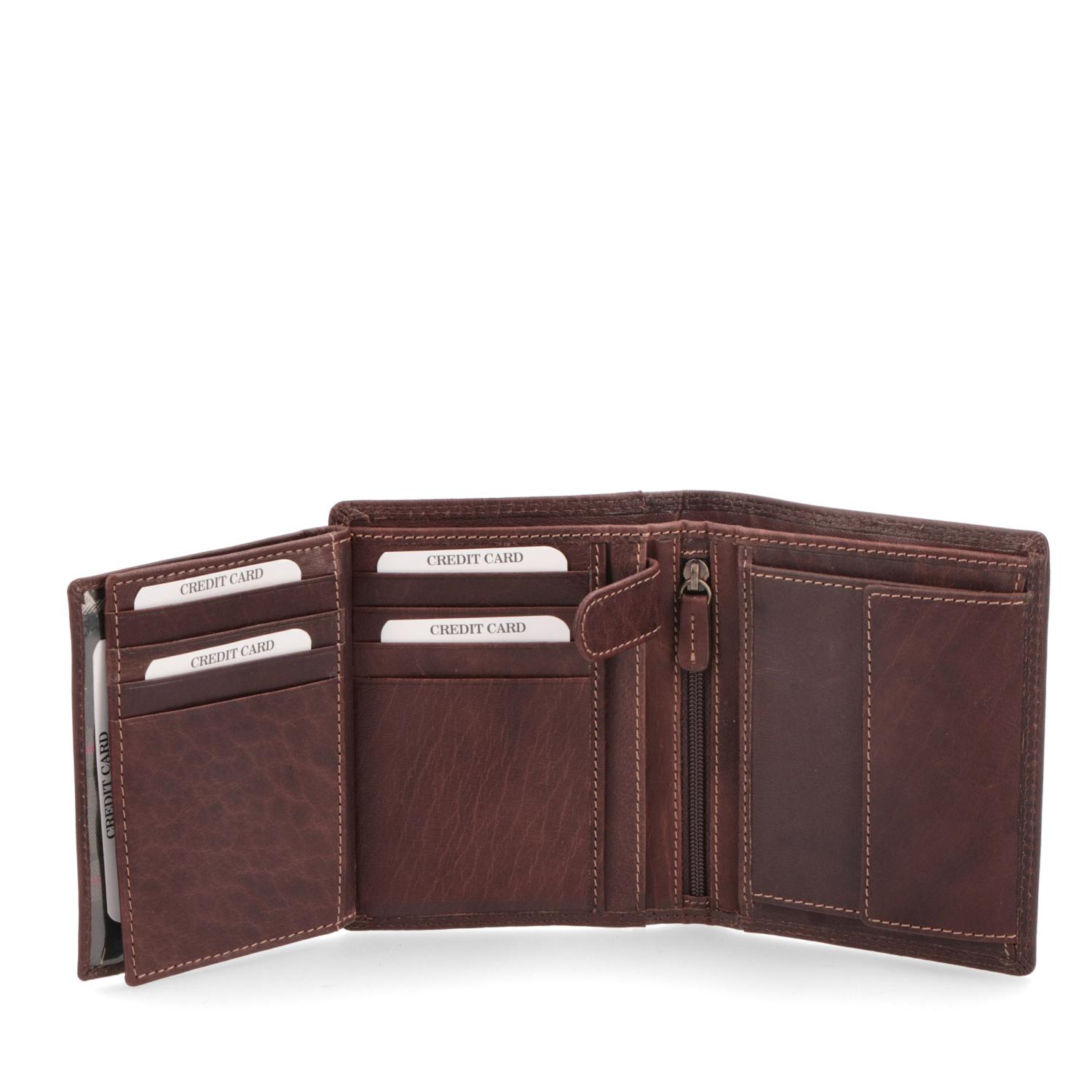 pánská peněženka nabízí dvě přihrádky na bankovky, kapsičkou na mince, osmi přihrádkami na karty a dalšími přihrádkami. podšívka je z kvalitní textilní látky.