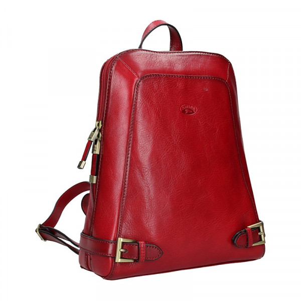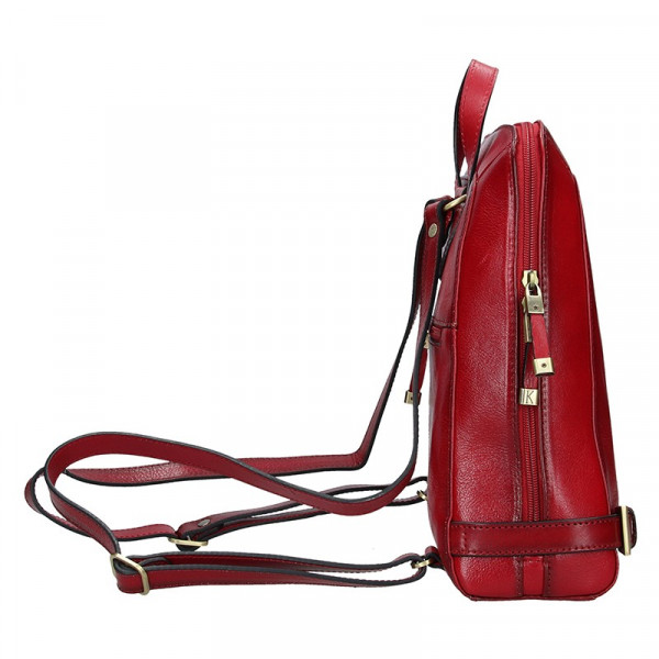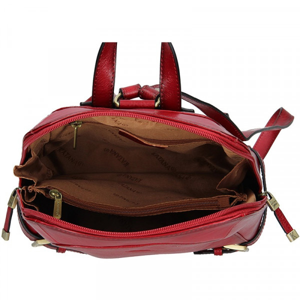 Batůžek má hlavní kapsu na zip, která je podšita podšívkou. Vnitřní prostor je rozdělen větší kapsou na zip na dvě poloviny. Uvnitř dále najdete otevřenou kapsičku na drobnosti a další kapsu na zip. Poslední zipovou kapsu najdete na zadní straně batohu. Batůžek má nastavitelné popruhy přes ramena, která jsou vyrobena z přírodní kůže.