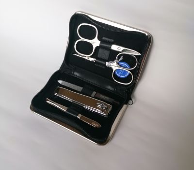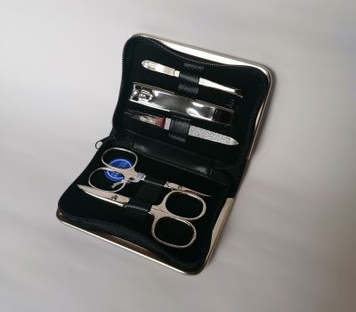 Nástroje v této manikúře jsou vyrobeny z kvalitní německé oceli značky Solingen. Pouzdro je vyrobené z luxusní hlazené kůže.