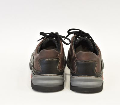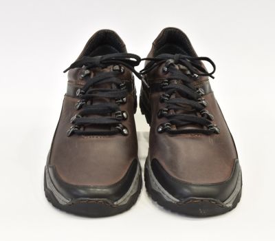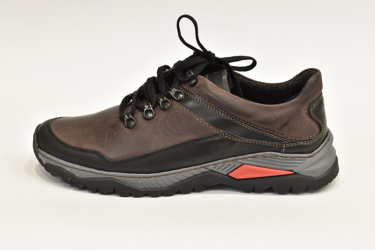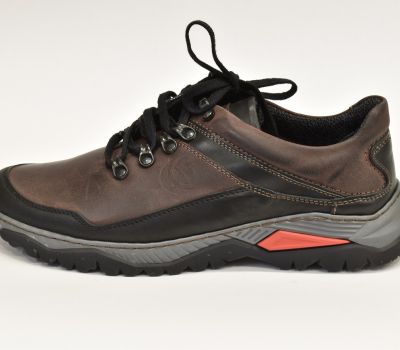 Pánská kožená multisportovní obuv v kombinaci barev černá/hnědý mahagon od Vás zaujme na první pohled svým kvalitním zpracováním a designem. tato lehká a pohodlná obuv Vás nezklame na výletech přírodou a neurazí ve městě. Svršek obuvi je vyroben z pravé lícové kůže. Obuv na bočních stranách je zdobena prošitým koženým proužkem v tmavě šedé barvy. Kožená stélka je vybavena podporou klenby. Uvnitř bot je textilní podšívka. Obuv je šněrovací s kvalitní syntetickou podrážkou, která vyniká dobrou přilnavostí na různých typech terénů. Jistota v chůzi je navíc podpořena vynikající prodyšností boty a dokonale odpruženou podešví, která absorbuje nárazy a tlumí tak dopad nohy.