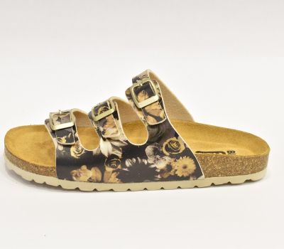 Dámské fuzbetové zdravotní pantofle značky Biolife se třemi nastavitelnými pásky na nártu. Rubová strana pásků je textilní, nášlapná anatomicky tvarovaná stélka je potažena broušenou kůží. Stélka BIRKO_FLOR ( velmi příjemné na bosou nohu). Pásky je možné délkově regulovat .