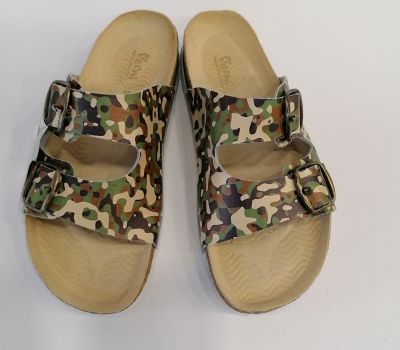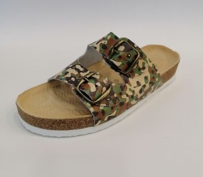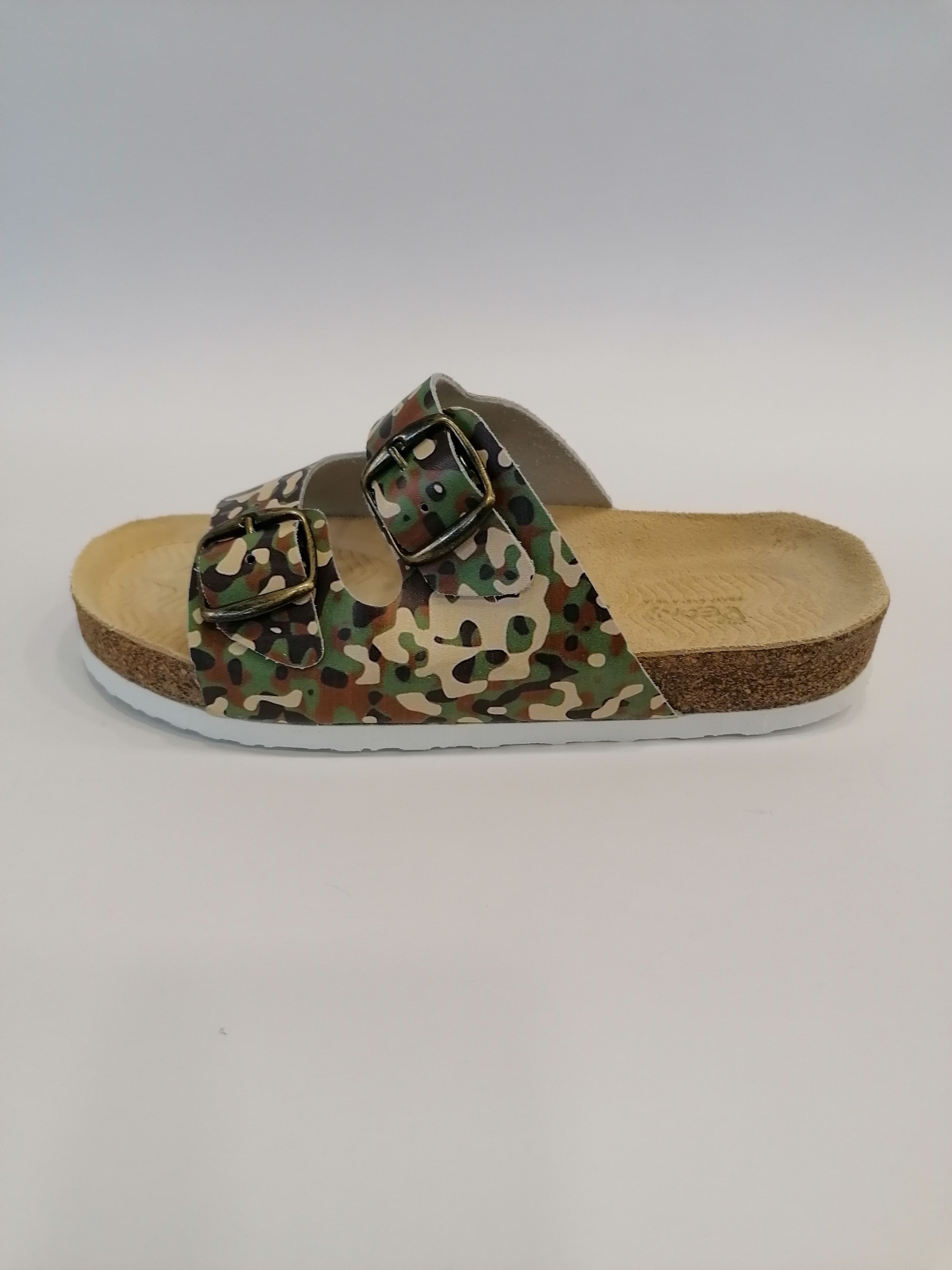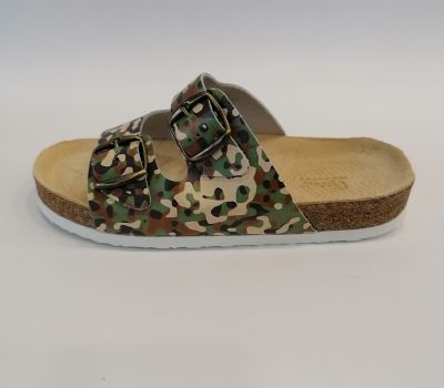 Odlehčené nadčasové pantofle s korkovou mezipodešví a dvěma koženými pásky s kovovými sponami umožňujícími přizpůsobení velikosti. Ortopedicky tvarované stélka potažená přírodní kůží a odlehčená podešev odolná proti uklouznutí Vám zajistí zdravé a pohodlné obutí na doma, do školy i do práce.