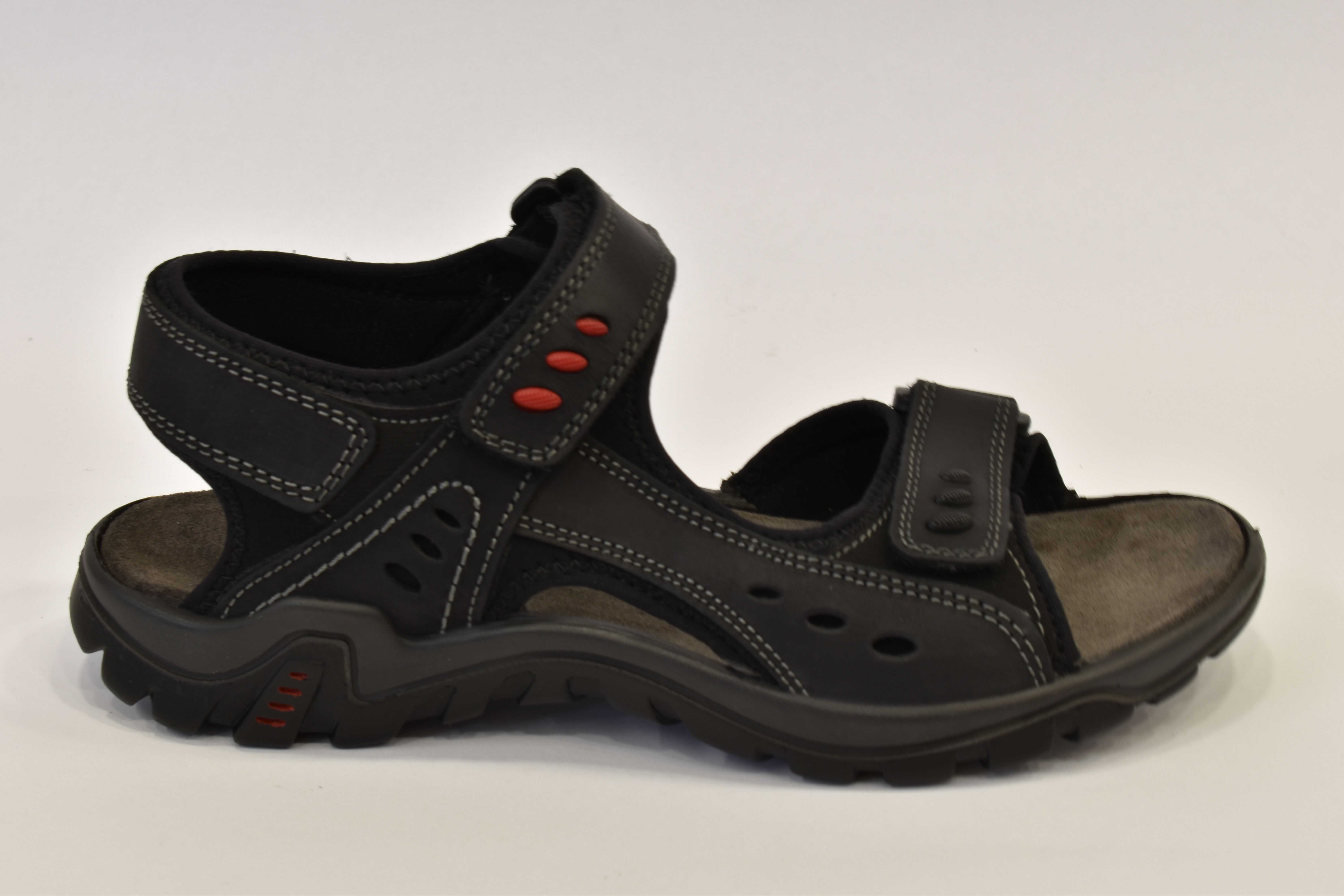 Pánské kožené sandály jsou vyrobeny z pravé přírodní kůže a syntetiky, vyměkčená kožená stélka, spodní i nártový pásek na suchý zip . Sandály jsou vybaveny pro maximální komfort při nošení přezkou na suchý zip v oblasti nártu- šíří si můžete upravit dle potřeby. Spodní pásek je také na suchý zip, ale plní pouze zdobnou funkci. Pásek je neregulovatelný. Kožená stélka je také krásně vyměkčená. Sandály jsou pohodlné, lehké a velmi příjemné na noze.