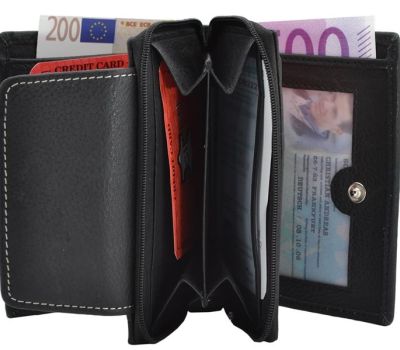 Naše noblesní a velmi praktická malá dámská peněženka s mnoha přihrádkami pro každodenní použití. Dámská peněženka je vyrobena z vysoce kvalitní kůže. Vybavení: 12 fochů na karty 2 přihrádky na bankovky 2 přihrádky na řidičský průkaz / ID kartu 1 průhledná přihrádka na ID kartu (nová ID karta) Dvojitá kapsa na mince se zipem.