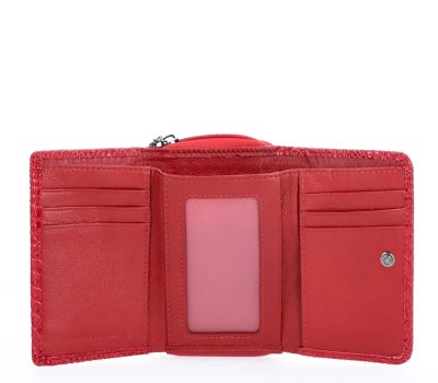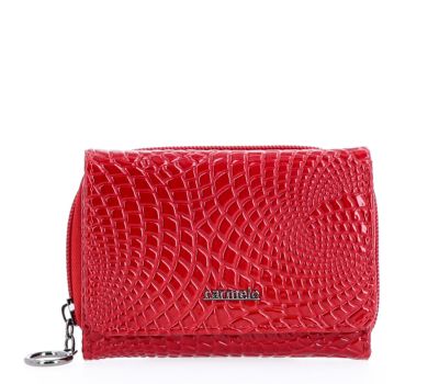 Elegantní peněženka z lakované kůže nabízí přihrádku na bankovky, zipovou kapsičku na mince, která se zapíná na cvoček a 6 přihrádek na karty, 1 průhledná přihrádka a 2 další přihrádky.