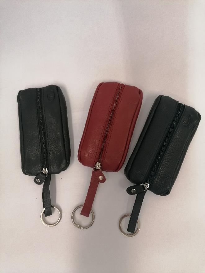 Klíčenka na zip z pravé kůže v barvě černá, vínová a modrá, cena 220 Kč, uvnitř kovový kroužek na klíče a z venku také.