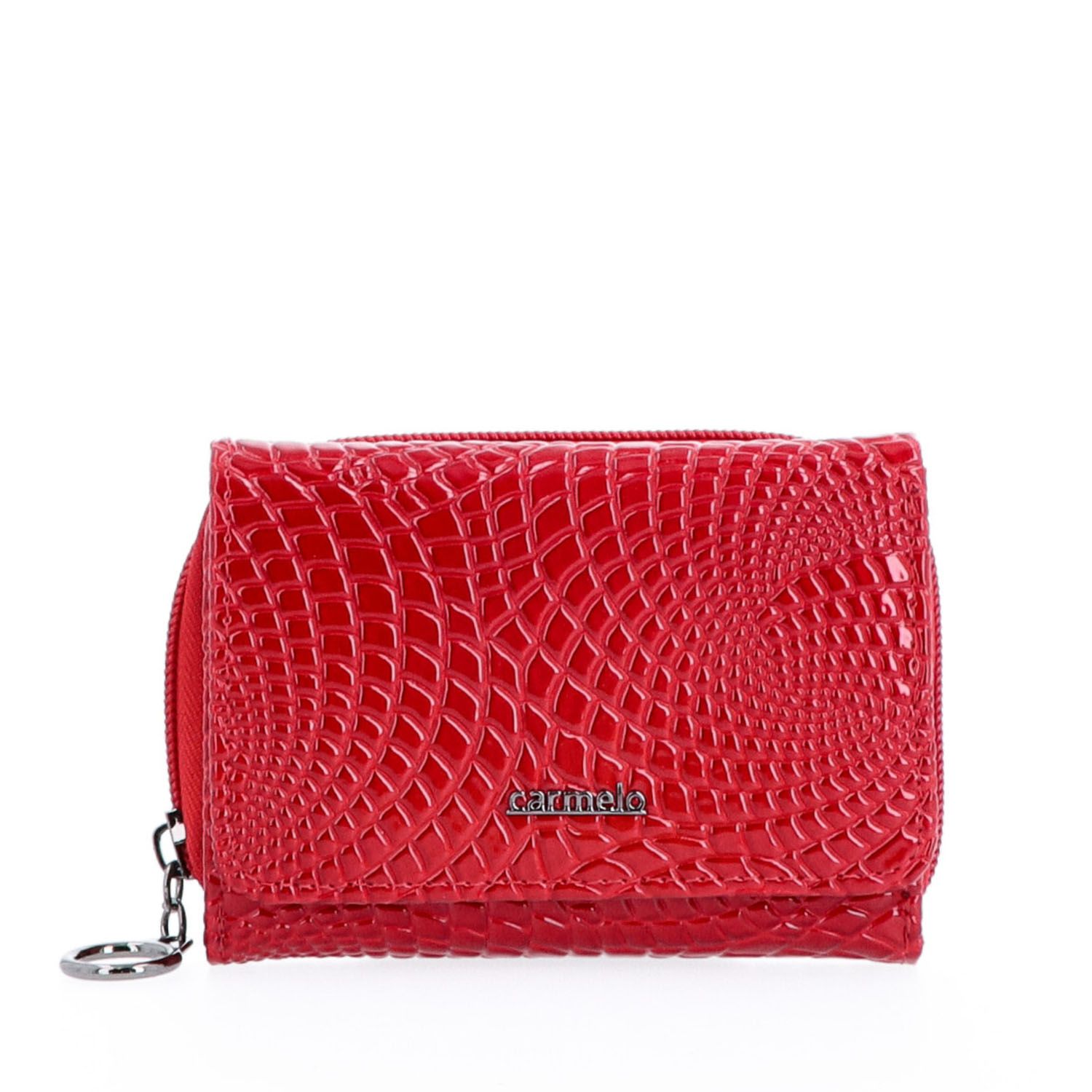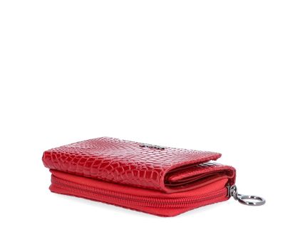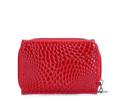 Elegantní peněženka z lakované kůže nabízí přihrádku na bankovky, zipovou kapsičku na mince, která se zapíná na cvoček a 6 přihrádek na karty, 1 průhledná přihrádka a 2 další přihrádky.