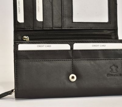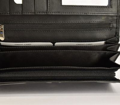 Dámská elegantní peněženka české značky Červinka Vám nabídne dostatek prostoru na platební nebo věrnostní kartičky. Peněženka se zapíná na klasický druk a po jeho otevření Vám peněženka nabídne 13 kapsiček na platební karty, 3 přihrádky na uložení bankovek. Kapsa na mince je rozdělená přepážkou a je uzavíratelná na zip. Na zadní straně je další zipová kapsa a jedna bez zipu.